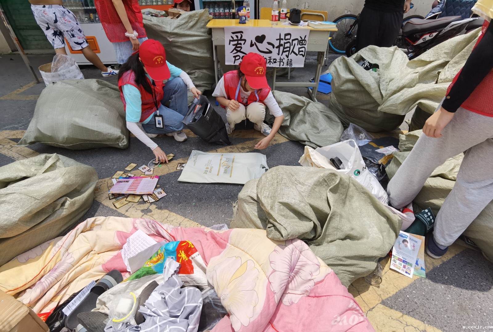 活动现场十分热闹,同学们都积极参与,将自己不便带走的书籍、衣物以及生活用品捐赠至各宿舍楼下的志愿捐赠站。